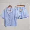 ست پیژامه بلوز و شلوارک کوتاه راه راه با مغزی صورتی