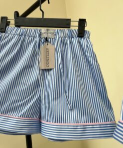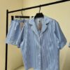 ست پیژامه بلوز و شلوارک کوتاه راه راه با مغزی صورتی