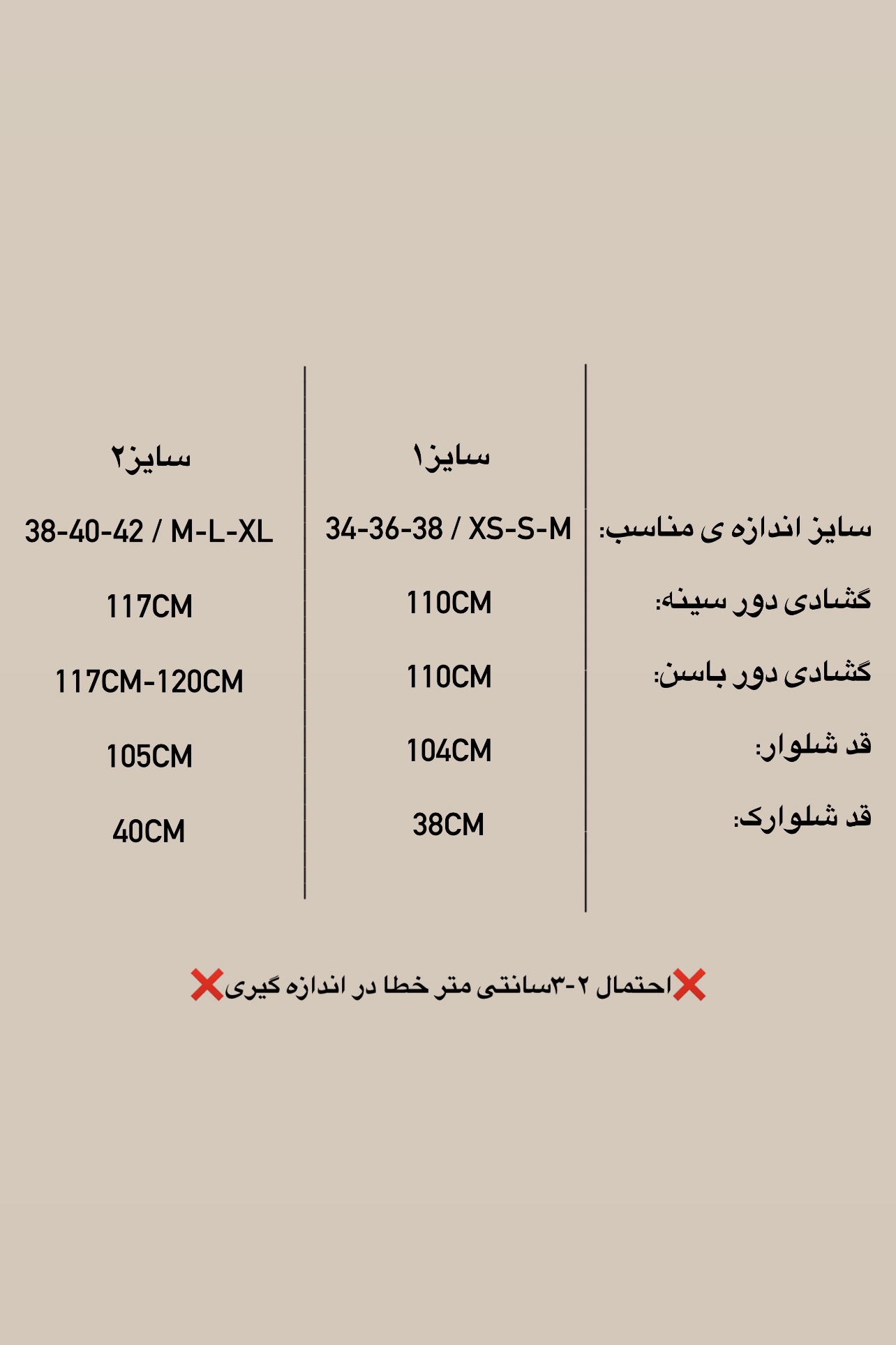 لطفا اول سایز مورد نظر خود را طبق جدول اندازه گشادی اسلاید آخر انتخاب نمایید