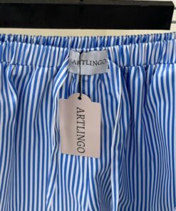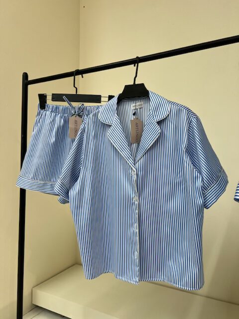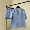 ست پیژامه بلوز و شلوارک کوتاه راه راه با مغزی نقره ای