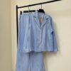 ست پیژامه بلوز و شلوار بلند راه راه با مغزی صورتی
